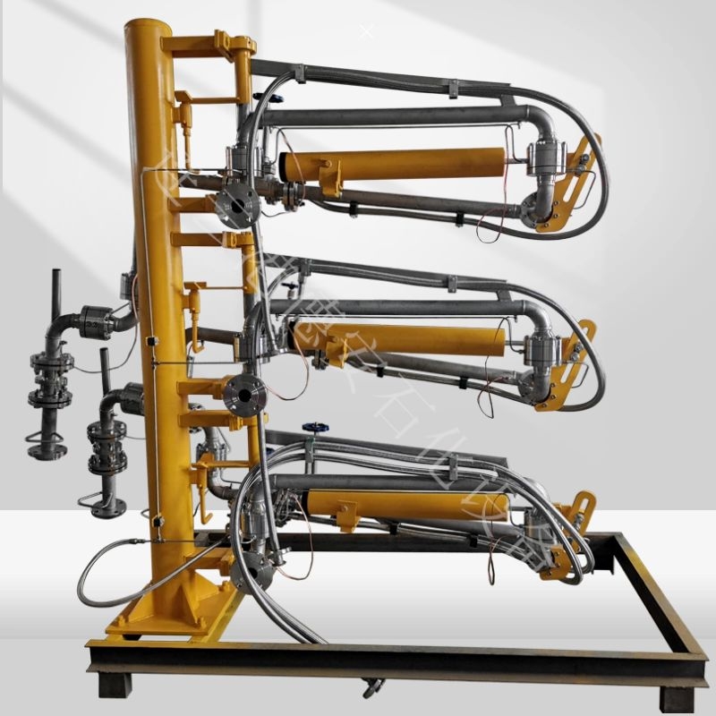 低温鹤管(流体装卸管)主要由固定,回转,操作,平衡等机构和油管组成。其中,回转机构(回转接头)是用锻钢或铝合金精心制造,内装复列球轴承,不锈钢特殊密封圈,它旋转灵活,密封性能可靠,经久耐用。平衡系统有配車,扭策,床策,拉策和丝打以及液压和气动平衡等型式,均能以很小的力进行操作。